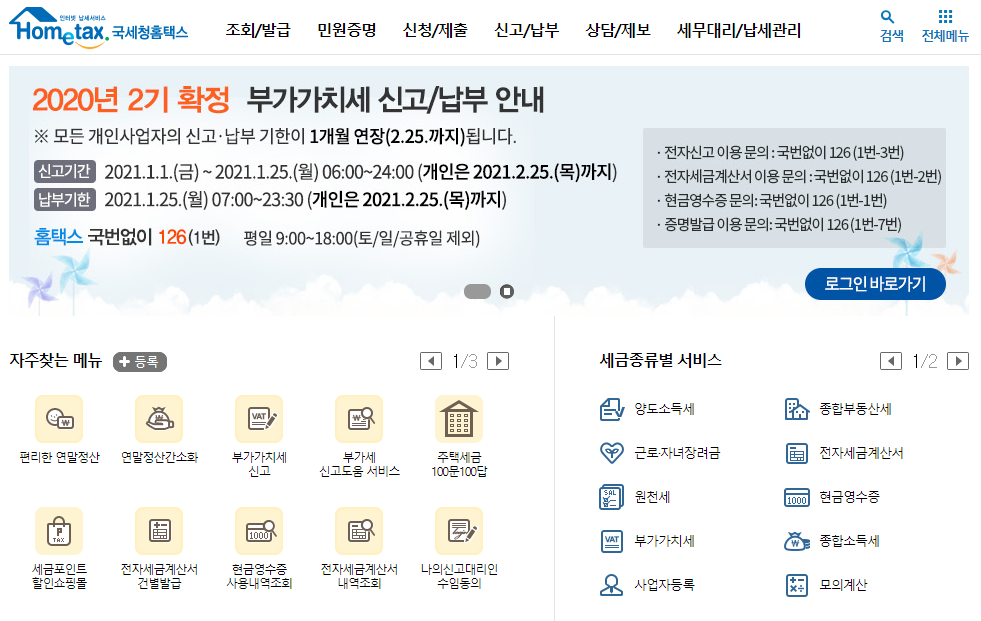 국세청 홈택스라고 검색 후 홈페이지에 접속해주시기 바랍니다.