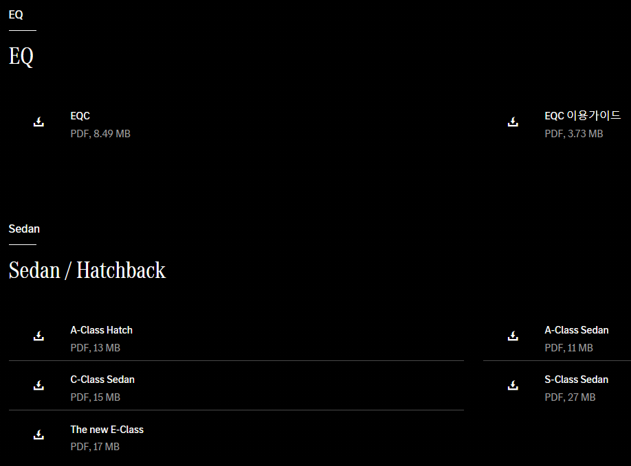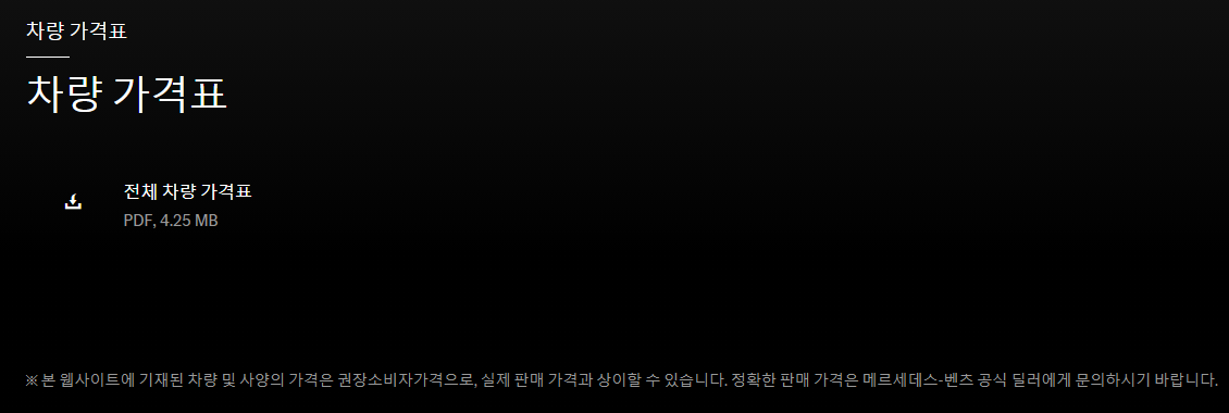 그리고 벤츠 홈페이지에서는 가격표뿐만 아니라 카탈로그도 확인하실 수 있습니다.