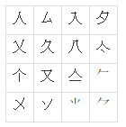 오른쪽을 보시면 사람인, 들입, 여덟팔 삼합집 등의 한자들이 나오게 됩니다.