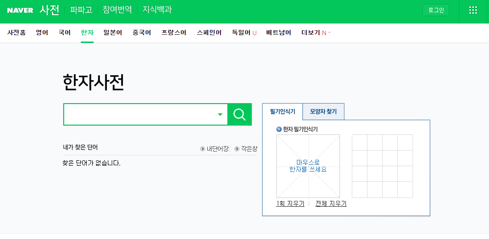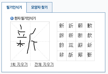 한자사전 필기인식 그려서 찾기 방법 안내 본문