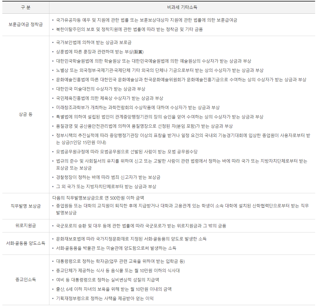 과세되는 기타소득인지 비과세되는 기타소득인지 위 표를 보면서 비교해보시면 어렵지 않게 확인하실 수 있을 것이라고 생각합니다.