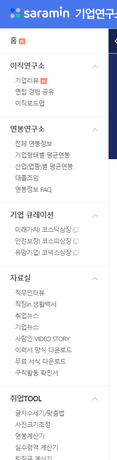 기업연구소를 클릭하시면 화면이 바뀌게 되실텐데 바뀐 화면에서 왼쪽 사이드를 봐주시가 바랍니다.