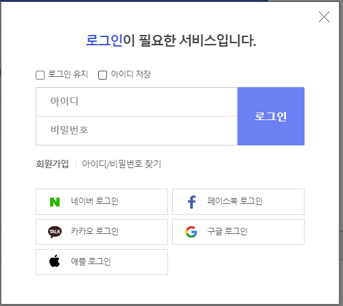 카카오, 구글, 페이스북, 애플 등으로 로그인을 하실 수 있으니 간단하게 회원가입하실 수 있습니다.