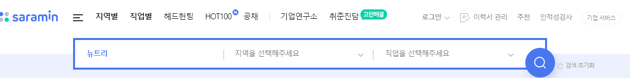 위쪽 메뉴들을 보시면 지역별, 직업별, 공채, 기업연구소 취준 진담 등의 메뉴들이 보입니다.