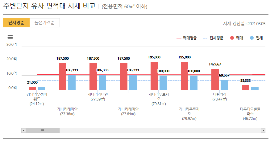 그리고 보시면 하위 평균가, 일반 평균가, 상위 평균가 라는 단어가 보이실텐데 하위 평균가는 해당 면적 내에서 저가로 거래되는 세대들의 평균적인 가격해당 면적 내에서 일반 평균가는 일반적으로 거래되는 세대들의 평균적인 가격, 상위 평균가는 해당 면적 내에서 고가로 거래되는 선호 세대들의 평균적인 가격을 말합니다.