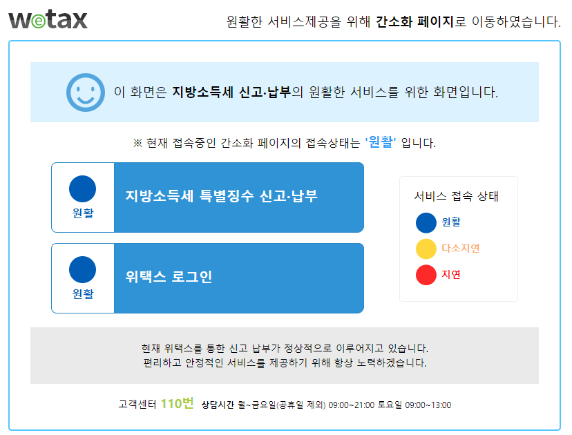 지금은 지방세소득세 신고 납부기간이라서 간소화 페이지로 이동이 되는데 만약에 이 화면이 나온다면 위택스 로그인을 그냥 클릭하시면 됩니다.