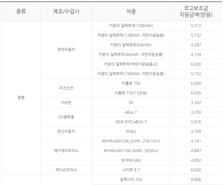 위 표는 화물 전기차 보조금입니다.