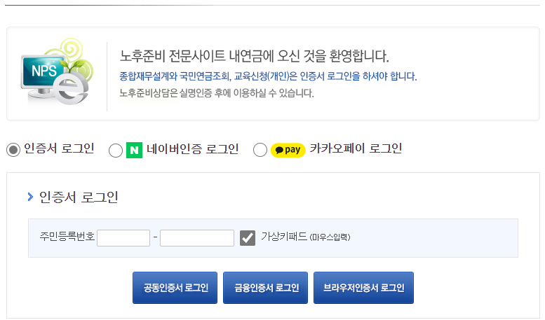 인증서를 이용해서 로그인 하시면 되는데 카카오페이가 있으시면 카카오페이로 로그인 하시면 됩니다.