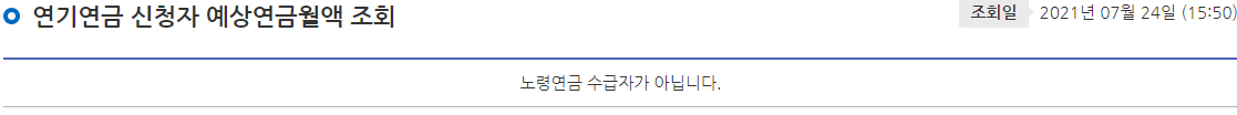 현재 저는 연기연금 대상자가 아니라서 예상연금월액 조회가 되지 않는데 만약 대상자라면 예상연금월액을 조회하실 수 있습니다.