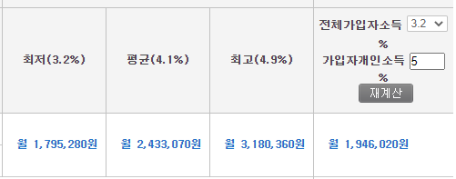 그리고 보시면 전체가입자소득과 가입자 개인소득을 설정하실 수 있습니다.