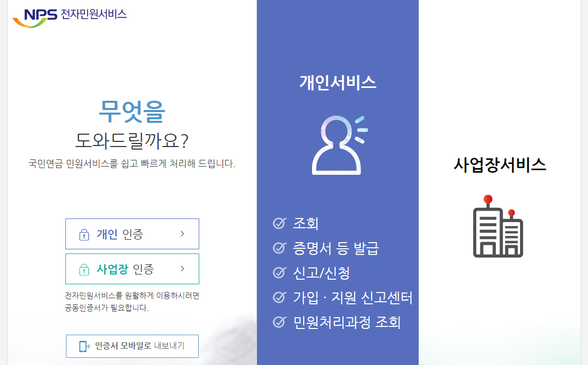검색창에 국민연금 공단 전자민원서비스라고 검색하셔서 홈페이지에 접속해주시기 바랍니다.
