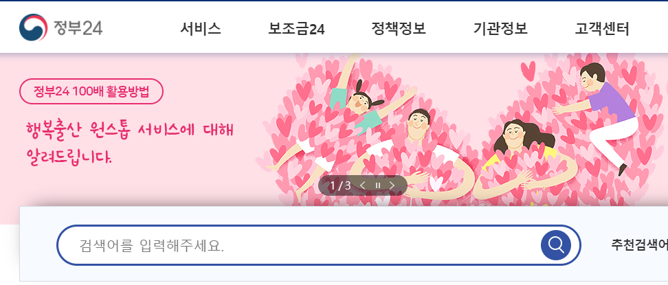 먼저 검색창에 정부 24시 홈페이지라고 검색하셔서 홈페이지에 접속을 하시기 바랍니다.