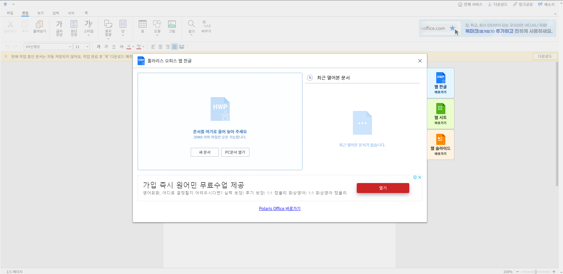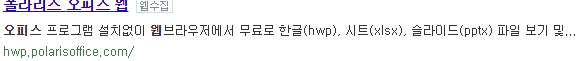 검색창에 폴라리스 오피스 웹이라고 검색하시면 되는데 검색하셔서 홈페이지에 접속을 하시기 바랍니다.