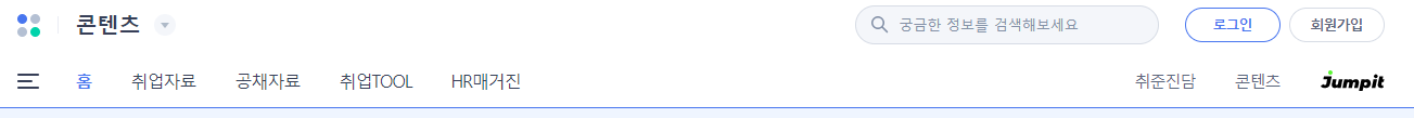 클릭하시면 상단 왼쪽 메뉴들이 취업자료, 공채자료, 취업 툴 등으로 바뀌게 됩니다.