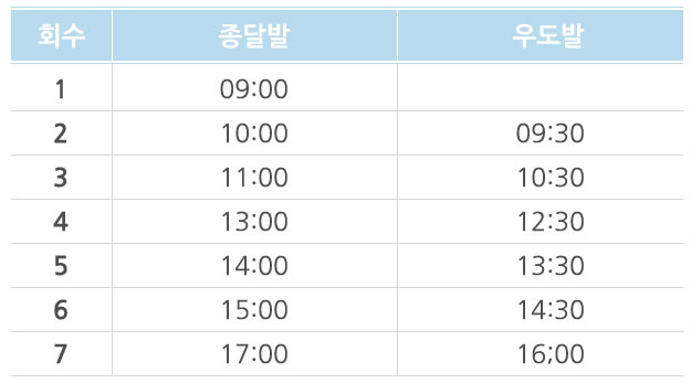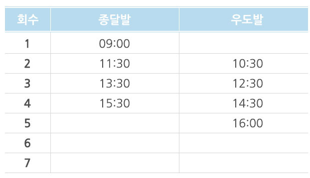 4~9월은 9시, 10시, 11시, 13시, 14시, 15시, 17시가 있습니다.
