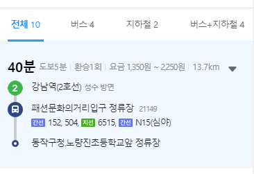 버스를 탑승해야하기때문에 2번째에 있는 대중교통을 선택해보겠습니다.