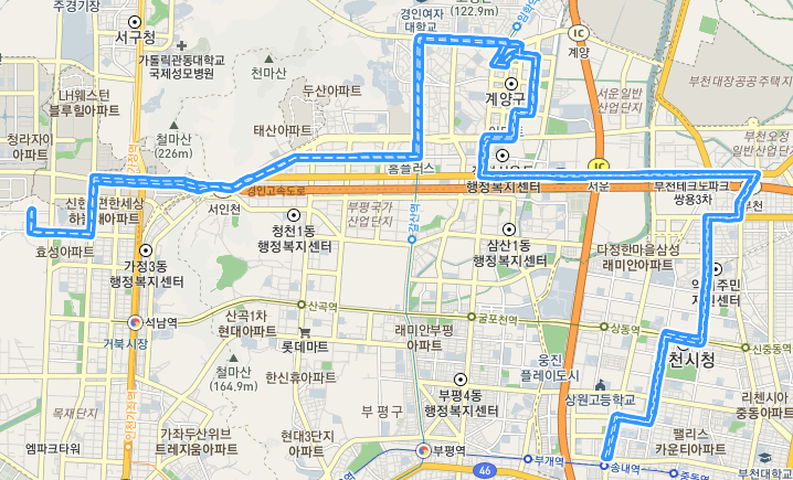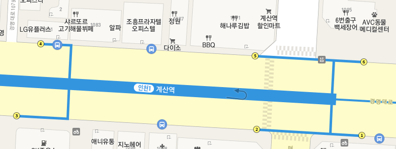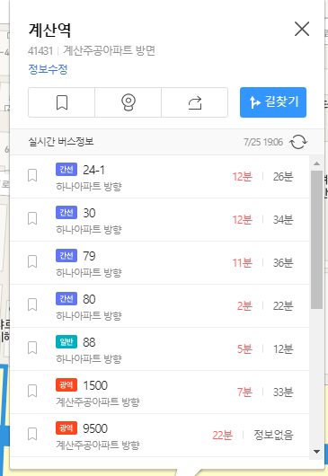 처음 카카오맵을 여니 인천계산역으로 되어 있는데 계산역에 사시는 분들을 위해서 먼저 버스 노선 검색을 해보겠습니다.