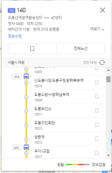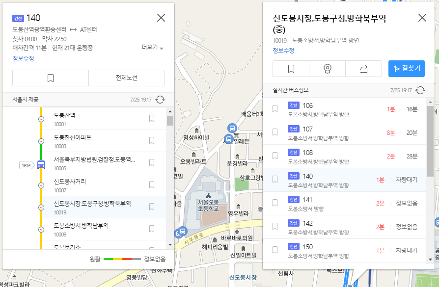 신도봉시장 도봉구청, 방학북부역 정류장을 클릭해보았습니다.