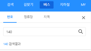 버스 번호를 140번으로 입력후 검색을 해보겠습니다.