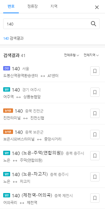 140이 들어가는 모든 버스들이 검색되는데 찾으시는 버스를클릭하시면 됩니다.