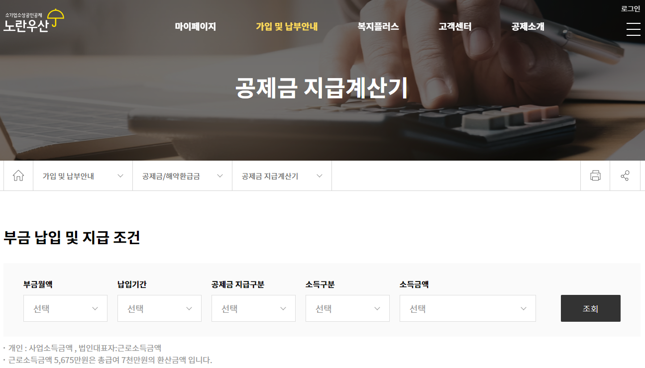 대략적인 금액을 확인하실 수 있으니 노란우산공제를 가입할 것인지 안할 것인지 등을 대략적으로 정하실 수 있을 것입니다.