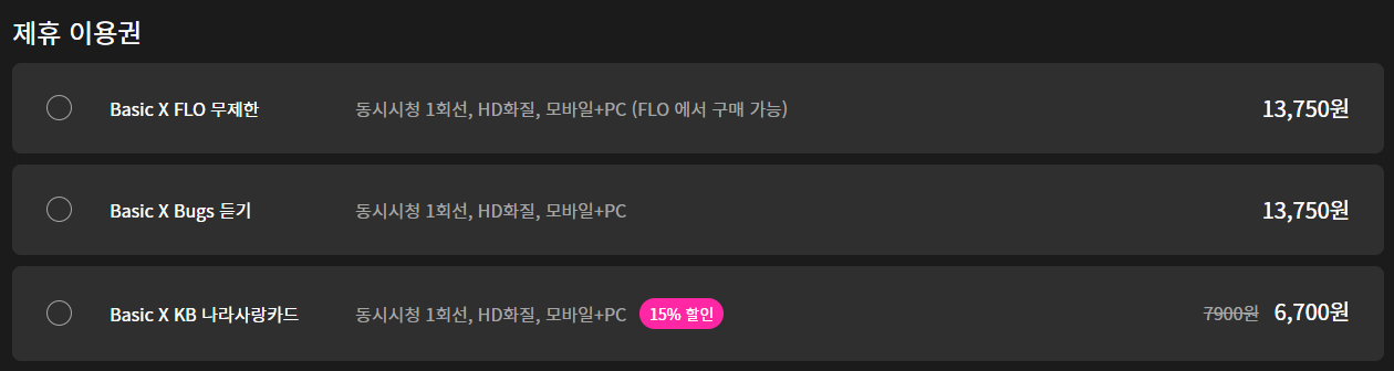 basic X Bugs 또한 ott 서비스와 음악 서비스를 같이 이용한다면 좋은 요금제이며 가격은 위 요금제와 똑같습니다.