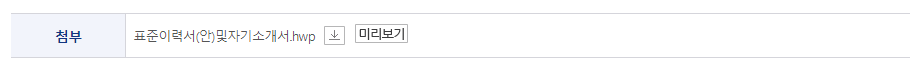 표준이력서 양식을 클릭하시면 이렇게 첨부가 되어 있는 것이 보이실텐데 미리보기를 하신 후 마음에 드는 것으로 다운로드 받으시면 됩니다.