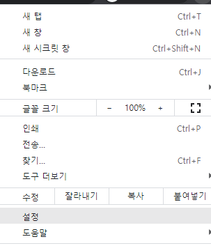 오른쪽 상단에 메뉴를 클릭하시면 여러가지가 보이실텐데 여기서 맨 아래쪽 쯤에 있는 설정메뉴를 클릭하시기 바랍니다.