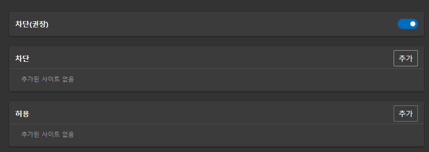 허용하시려면 차단된 사이트를 해제 하신 후 허용 추가 버튼을 클릭하셔서 추가하시면 됩니다.