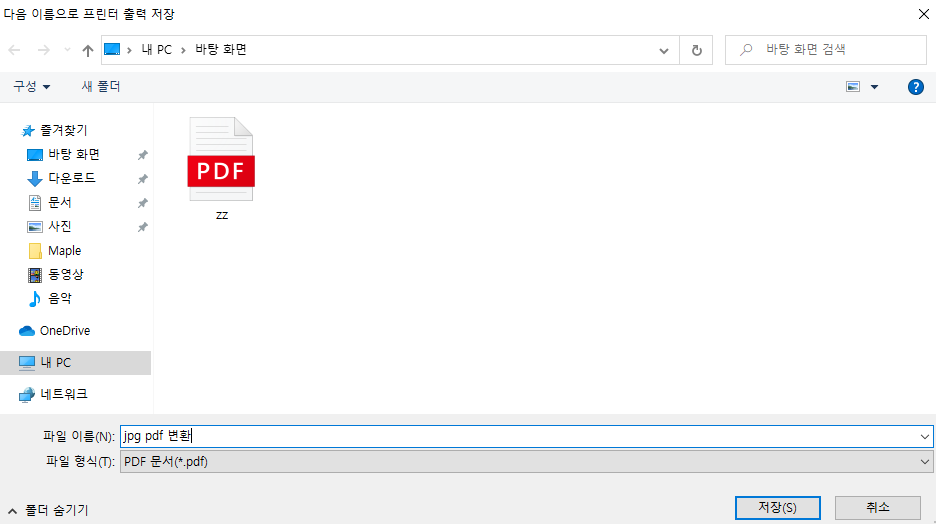 보시면 파일형식이 pdf 파일로 되어 있는데 저장을 하면 jpg 파일이 pdf 로 변환됩니다.