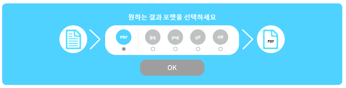 첨부하시고 나면 원하는 결과 포맷을 선택할 수 있는 창이 나오게 됩니다.