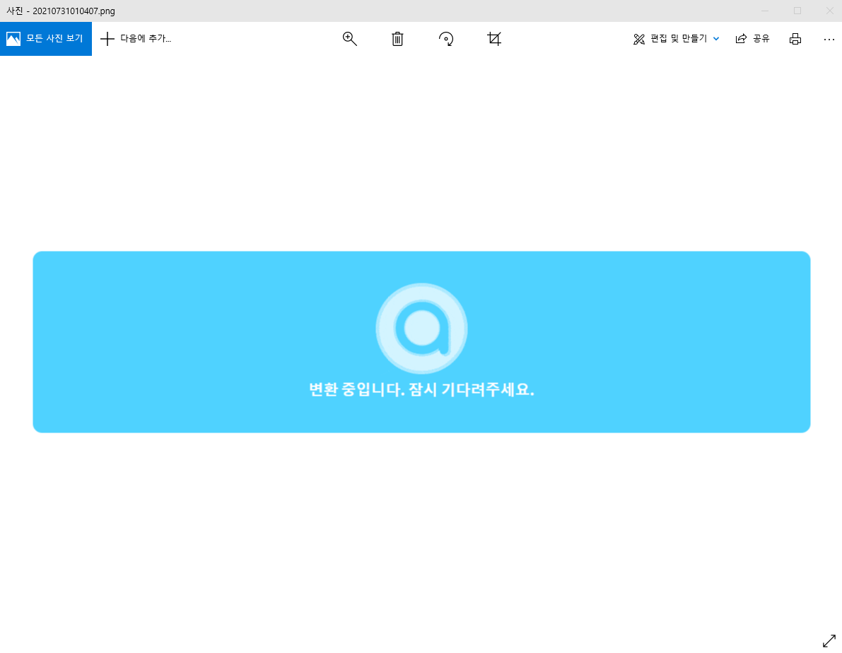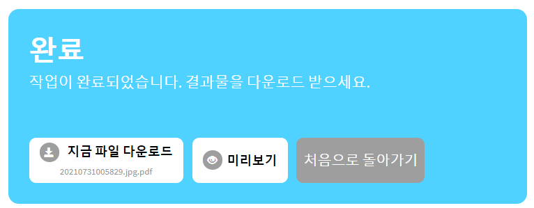 변환시간은 파일크기에 따라 다르니 파일 크기가 크다면 조금 기다리시기 바랍니다.