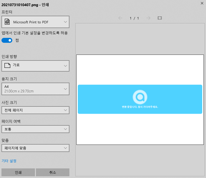 인쇄버튼을 클릭하시면 이렇게 pdf 파일로 저장을 할 수가 있습니다.