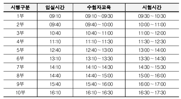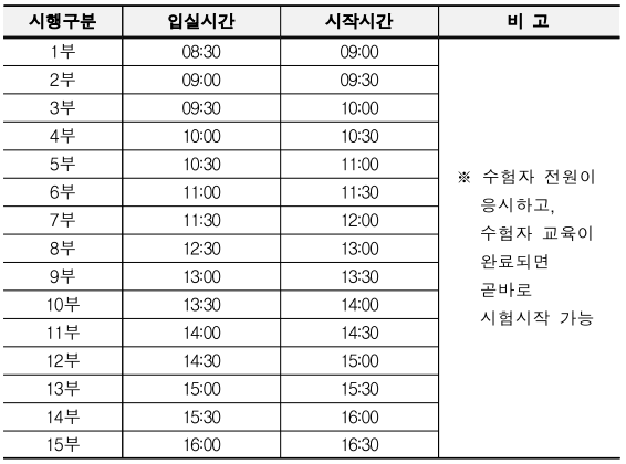 위 표는 참고만 하시기 바라며 시행 구분은 소속 기관별 시험장 별로 별도 지정하니 차이가 있을 수 있습니다.