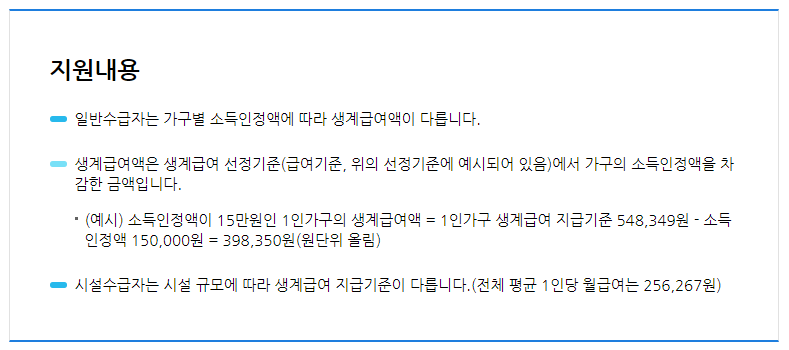 기초생활수급자 생계급여 지원금액을 설명해드리겠습니다.