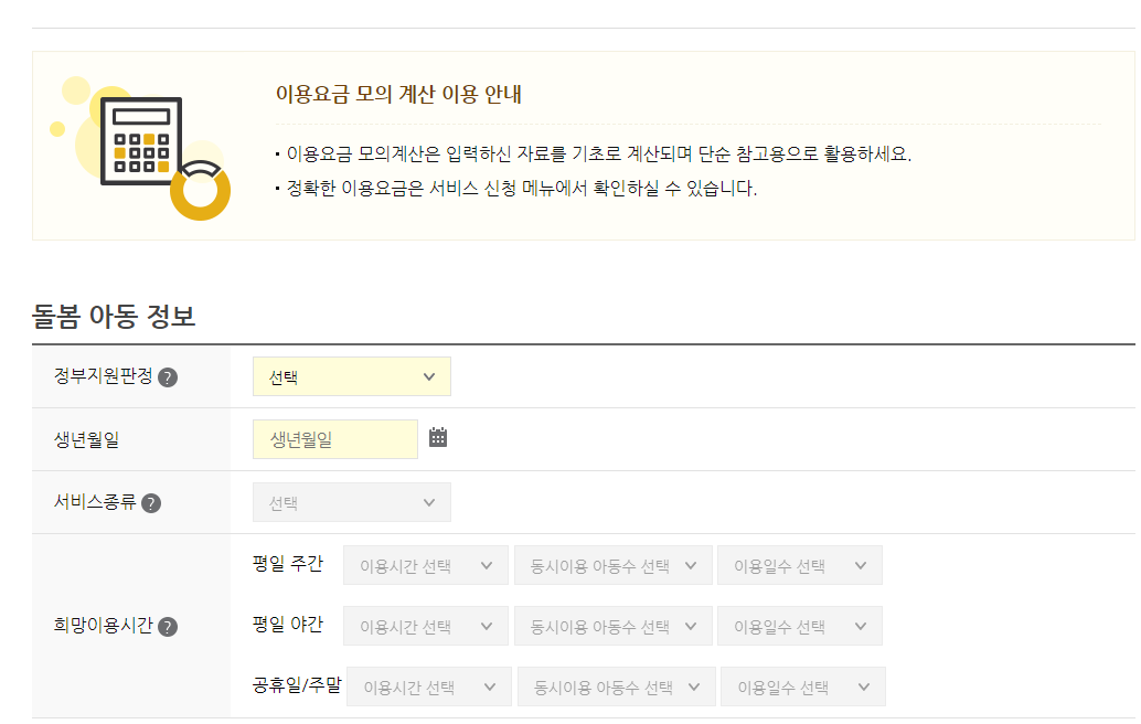 마지막으로 아이돌보미 홈페이지에서는 이용 요금 모의계산도 하실 수 있습니다.