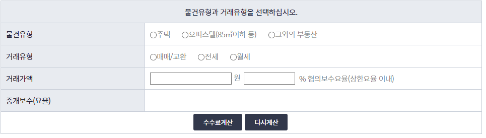 부동산 중개수수료 계산기 본문