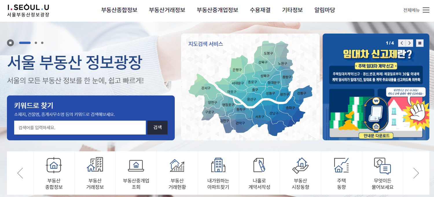 검색창에 서울 부동산 정보광장이라고 검색하시면 바로 찾으실 수 있습니다.