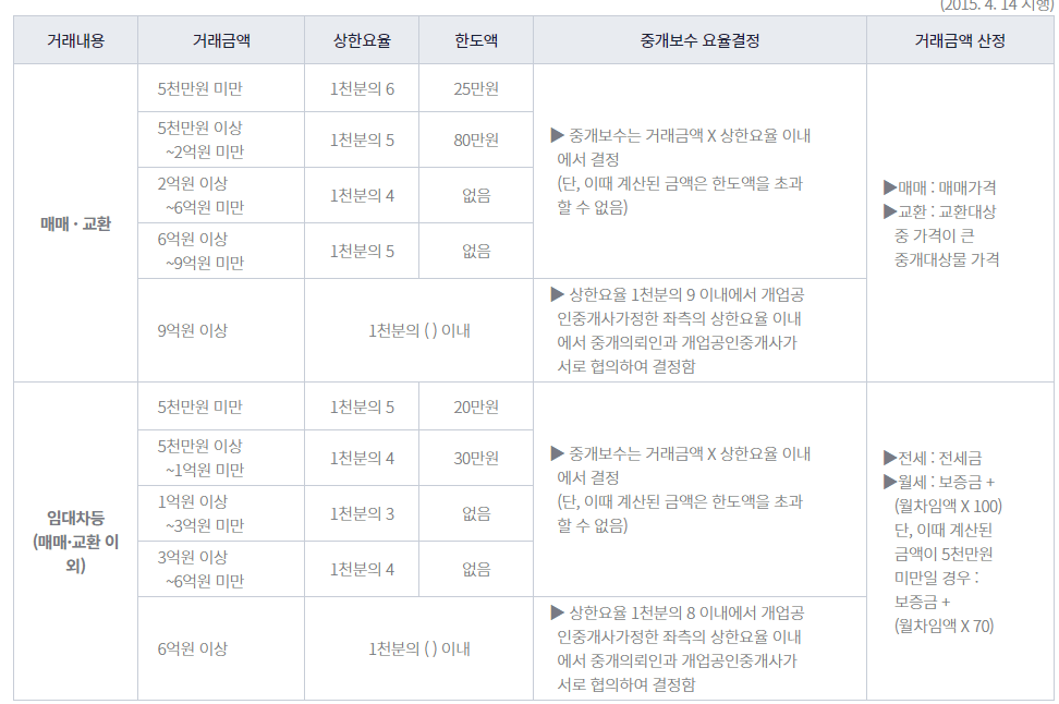 클릭하시면 먼저 부동산중개수수료율표가 보입니다.