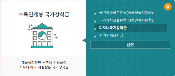 소득연계형 국가장학금은 대학생이라면 누구나 신청하여 소득에 따라 지원받을 수 있는 국가장학금을 말합니다.