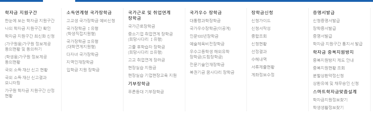 한국장학재단 홈페이지에는 여러가지 정보들이 있으니 한번 훑어보시기 바랍니다.