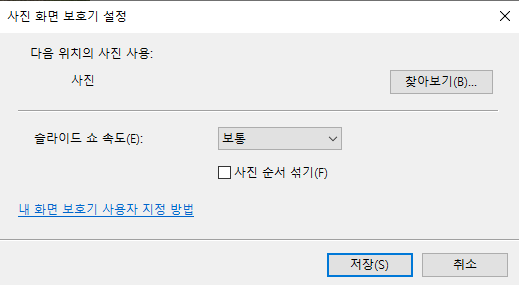 윈도우10 화면보호기에서 사진을 클릭할 경우 본인이 원하는 사진을 설정하실 수 있습니다.