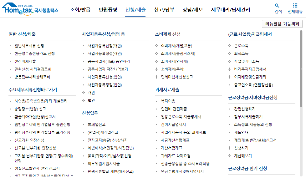 국세청 홈택스 홈페이지에 접속하셔서 빠르게 서비스를 이용하시기 바랍니다.