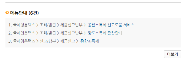 종합소득세가 들어가는 모든 메뉴들이 검색이 됩니다.