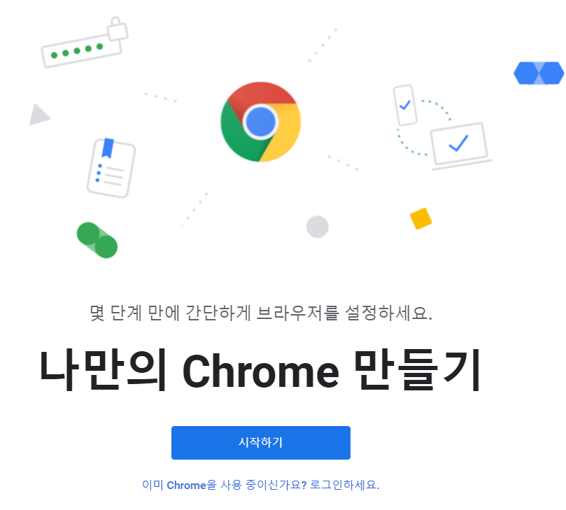 계정이 있으시다면 로그인을 하셔도 되는데 없다면 로그인을 하지 않으셔도 됩니다. 이때까지 로그인 해서 계정으로 사용해오셨던 분들 로그인한 그 계정의 즐겨찾기, 설정 등을 불러와서 예전 환경 그대로 크롬 브라우저를 사용하실 수 있습니다.