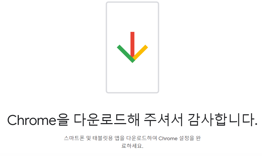 크롬 다운로드 버튼을 클릭하면 화면이 바뀌게 됩니다.