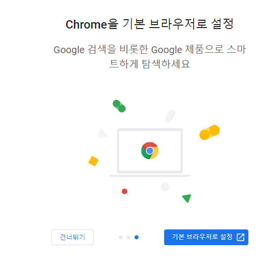 설치가 완료되면 바로 크롬 브라우저가 실행됩니다.