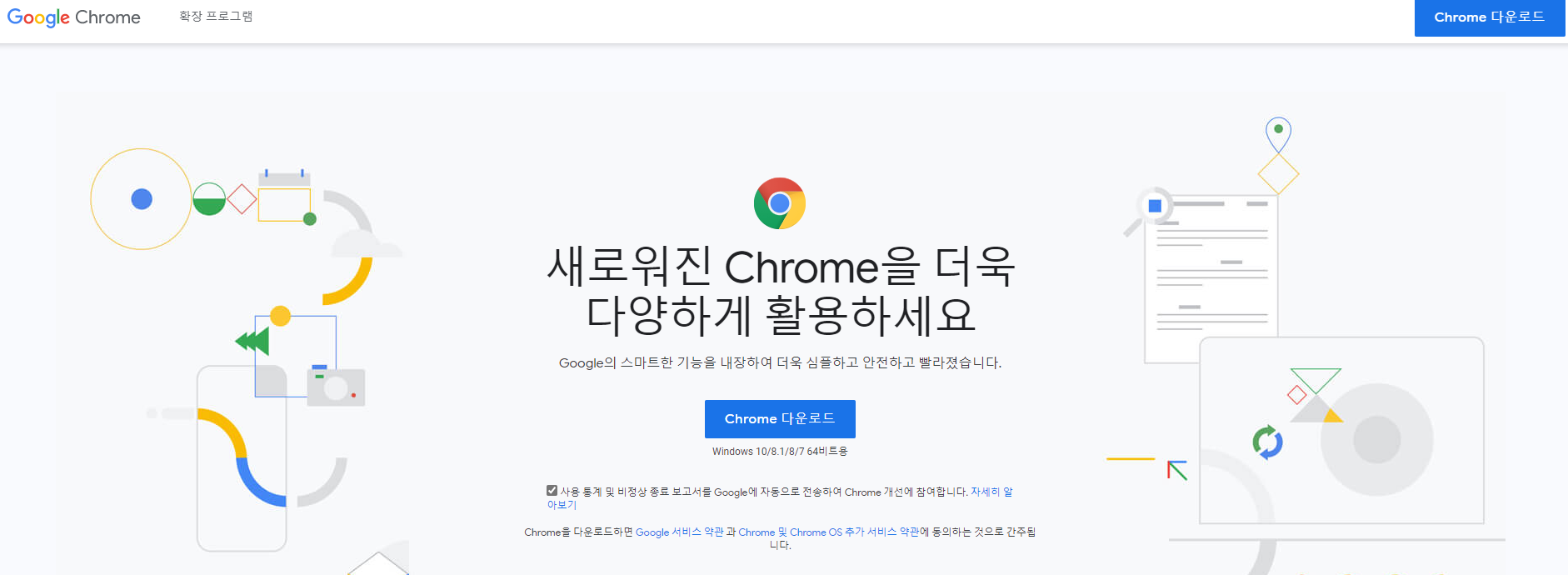 크롬 홈페이지에 접속하시면 나오는 화면입니다.
