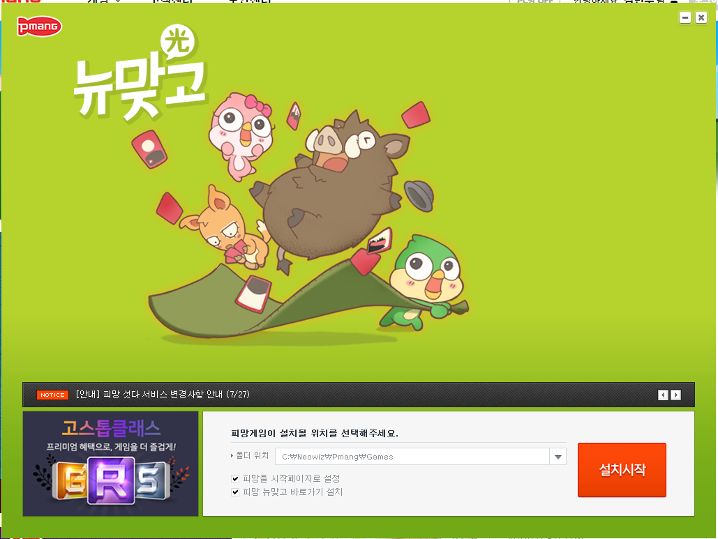 설치를 다 하셨으면 이제 본격적으로 피망 뉴맞고 설치하기가 시작됩니다.
