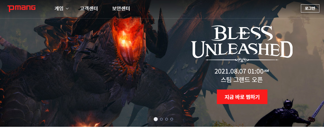 피망 홈페이지에 처음 접속하면 나오는 화면입니다.